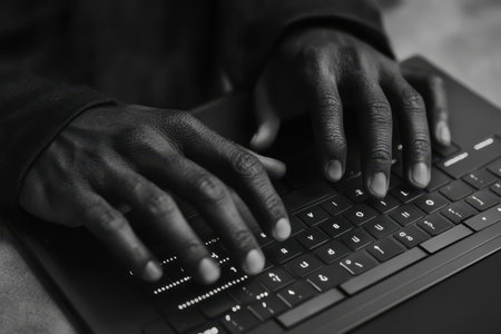 A person is typing on a keyboard with their hands. Concept of focus and concentration as the person types.