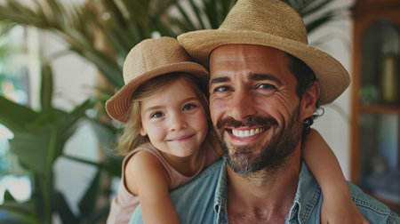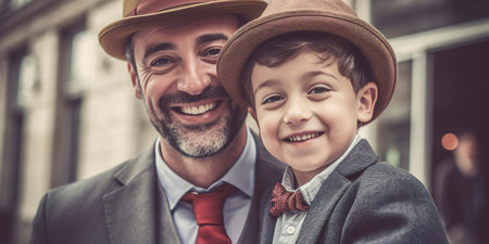 Father's day. Dad with child, Happy time with family, Celebrate a birthday. Good relationship between parents and children. Generation age, nostalgia smile love, enjoy, laugh. son, daughter cute
