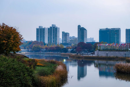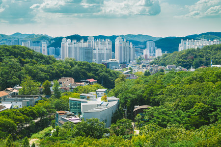 Anyang, Korea - September 19, 2016 : Green nature and modern cityscape