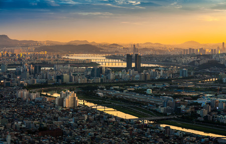 The beautiful view to Seoul city and Han-gang river from the air, South Korea