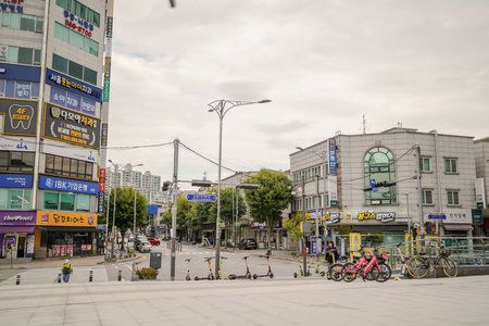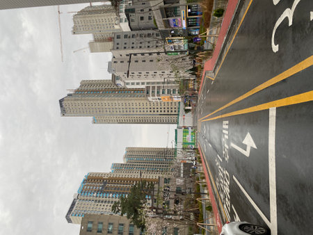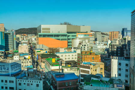 Busan, South Korea, September 13, 2019: view of multistorey buildings and road on sunny day