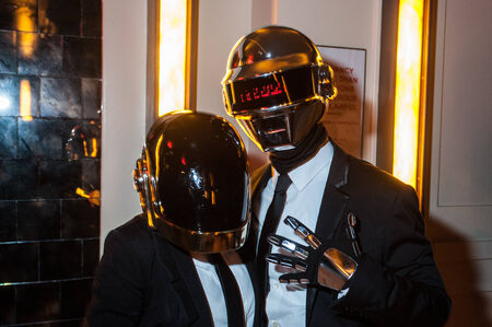 NEW YORK, NY - OCTOBER 31: Guests in mascarade costumes posing at The Fashion Party during Halloween event at the Venue 409 on October 31, 2014 in New York City.