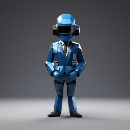 A sleek humanoid robot in a shiny metallic suit, exuding a modern and high-tech vibe against a dark backdrop.