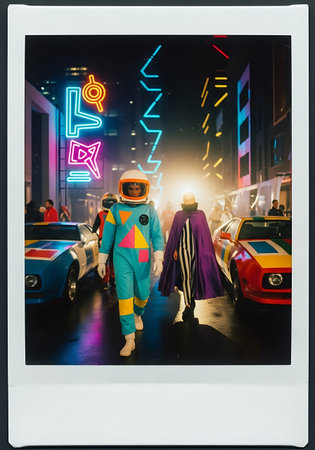Futuristic Astronauts at a Cosmic Disco Party. Generative ai. High quality illustration