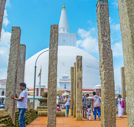 ANURADHAPURA, SRI LANKA - NOVEMBER 26, 2016: The medieval vatadage pillars in front of Ruwanwelisaya Stupa were the part of Stupa House, on November 26 in Anuradhapura.