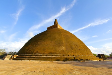 Blue sky adds color to the majestic Abhayagiri Stupa in Sri Lanka