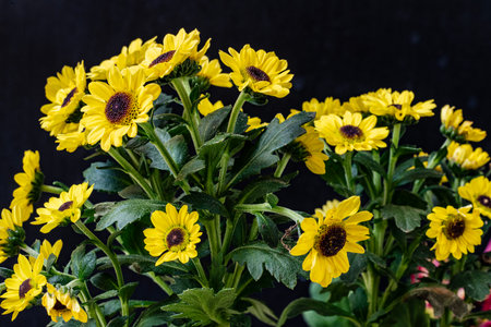 Yellow chrysanthemum flowers on a black background