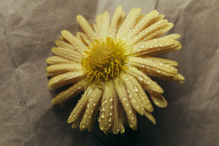 Yellow chrysanthemum with water drops on the petals