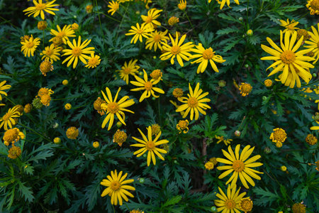 Flowers and buds of Euryops Pectinatus commonly known as Yellow Daisy