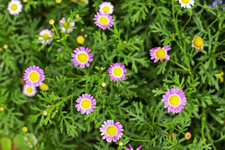blue chamomile on green background.Pyrethrum