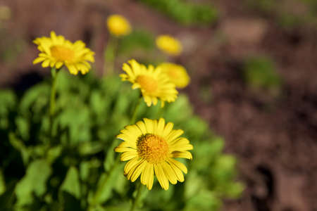 Leopard´s Bane (Doronicum orientale) flowers. Selective focus and shallow depth of field.
