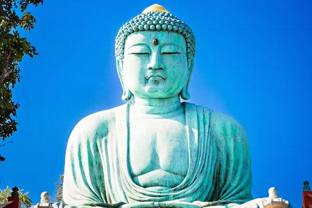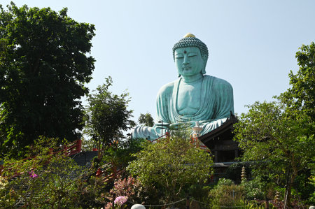 A towering Buddha statue is captured under clear skies, highlighting a popular sightseeing destination in Japan. Tourists visit this cultural landmark to admire its size, detail and spiritual meaning
