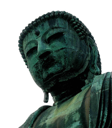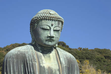 The Great Buddha Daibutsu is a monumental bronze statue in Kotoku-in temple, Kamakura, Japan. Close-up view