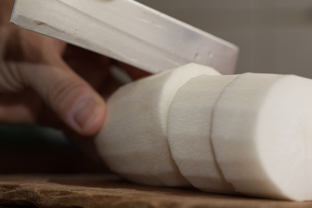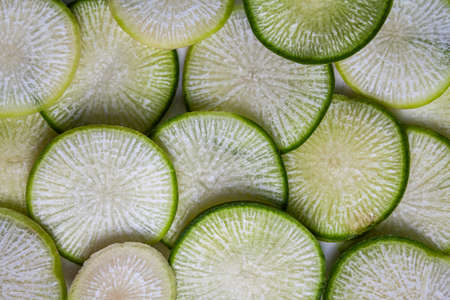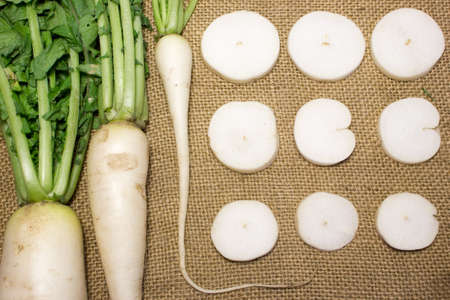 Fresh Daikon Radish Slices on Wood, a Nutrient Rich Root Vegetable