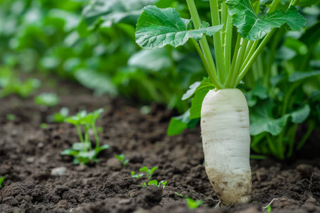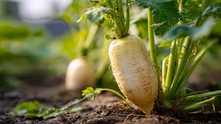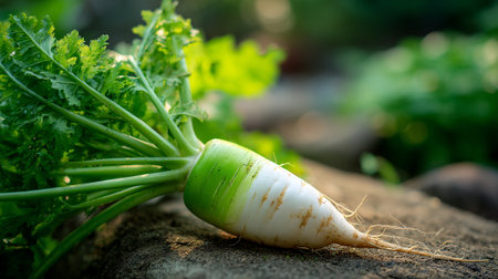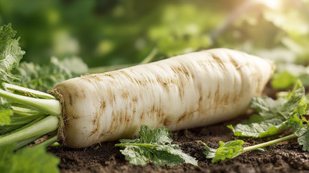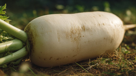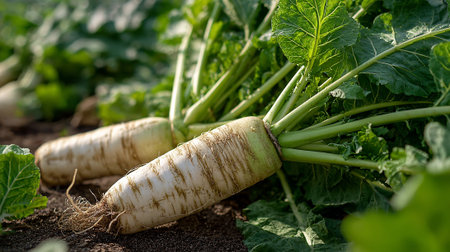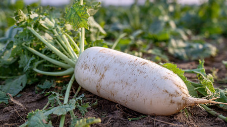Fresh Daikon Radish: Organic Produce Ready for Harvest from the Earth