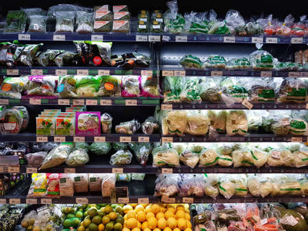 BANGKOK, THAILAND - NOVEMBER 30 : fresh organic vegetables and fruits for sale on stand or shelf in Tops Supermarket on November 30, 2016 in BANGKOK, Thailand.
