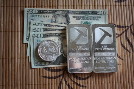 American dollars on a gray cement background. Finance, business and banking. Dollars in a cart.