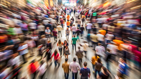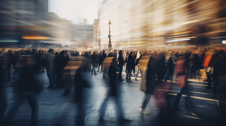 Blurred people walking down a city street. Concept of fast modern life. Human crowd in moves in dynamics. AI Generated