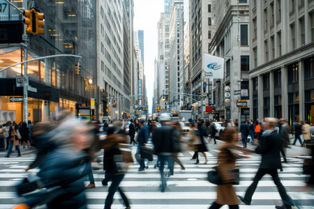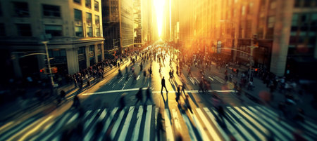Crowd of people walking on the street in New York City, A blurred crowd of unrecognizable people on the street, AI Generated