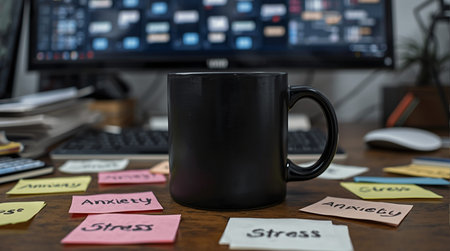 Anxiety - Stress - Fear - Worry text on sticky notes with office desk concept