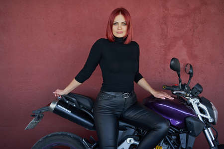 Sexuality empowered motorcyclist woman with modern look, Power woman concept.