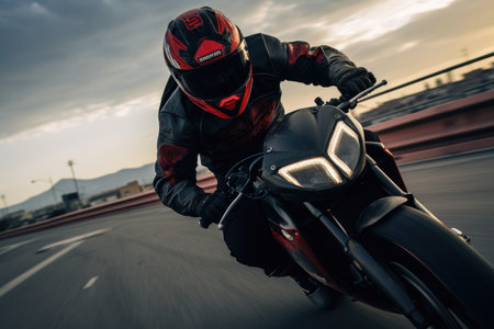 Dynamic motorcycle racing down the road with striking speed blur effect in red and black colors