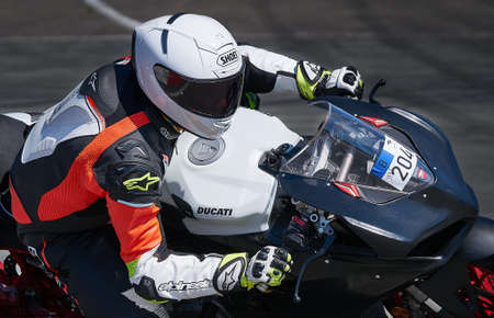 10-05-2021 Riga, Latvia. Motorcycle rider at regular road. MotoGP racing.