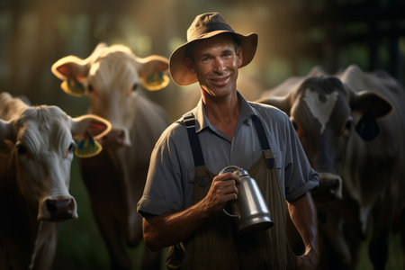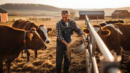 The farm owner is taking care of the dairy cows. that were created by realistic Generative AI