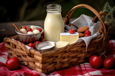 picnic basket with eggnog ingredients and recipe, created with generative ai