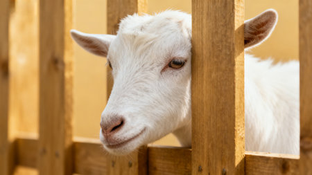 AI Generated. Goat Climbing Rustic Wooden Fence in Natural Light