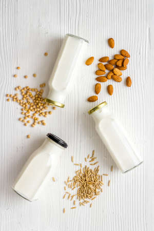 Set of non dairy substitute milk with almonds rice and oats