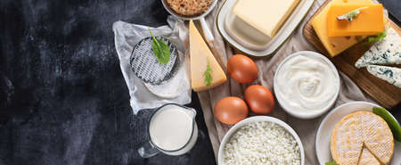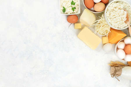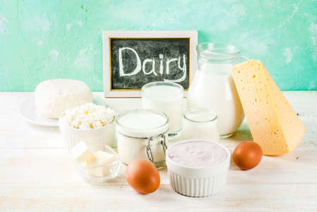 Assorted fresh dairy products, healthy breakfast with ingredients