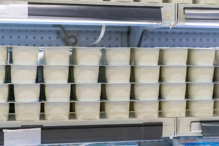 Yoghurts on the shelf in the supermarket