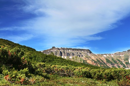 Mountain landscape at Paramushir Island, Kuril Islands, Russia.