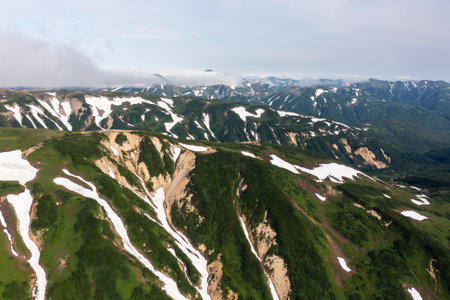 Beautiful mountain landscape of Vilyuchinsky Pass at sunny day. Kamchatka Peninsula, Russia