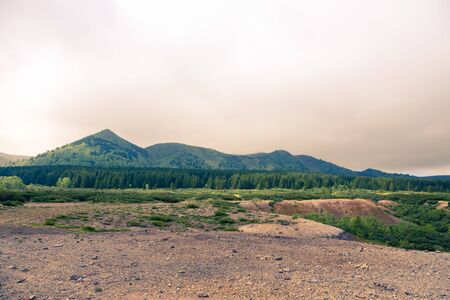 Beautiful deserted landscape of Kunashir island. Toned.