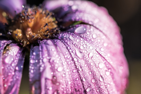Purple flower through the glass with waterdrops background,Abstract Nature blur background.