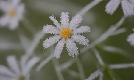 hoarfrost on shallow camomiles