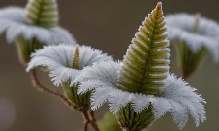 Frosted fern leaves on a frosty winter morning.