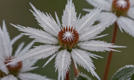 Frost on a flower in winter, close-up. Macro