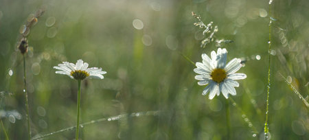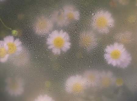 Camomile with dew drops. Spring Flower natural texture