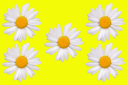 white daisies close-up on a yellow background. flat layout