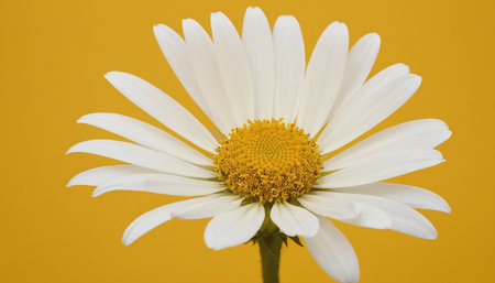 One chamomile on a yellow background