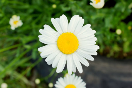 Daisyflower. Oxeye daisy, Leucanthemum vulgare, Daisies, Dox-eye, Common daisy. Gardening concept