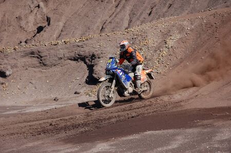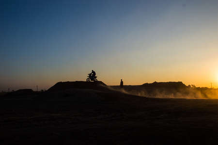Motorbike racing through Sahara Desert, chebbi dune in Merzouga, Morocco