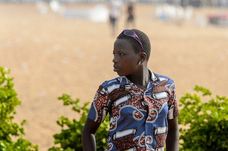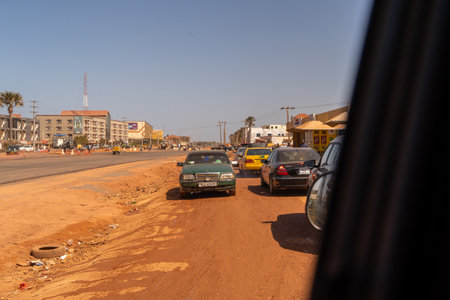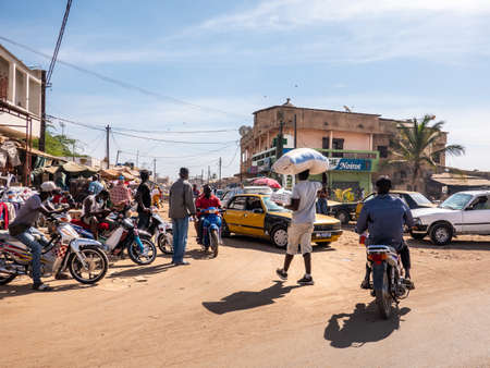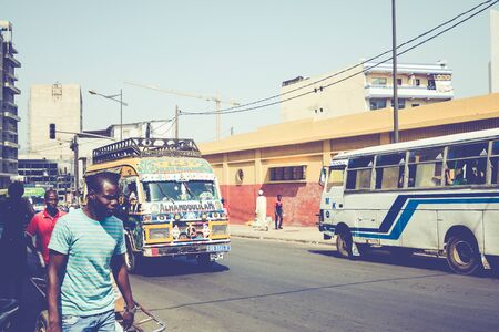 DAKAR, SENEGAL - NOVEMBER 11, 2019: People working and traffic at Senegal capital Dakar, West Africa.