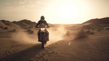Biker riding a motorcycle in the desert. 3d rendering. generative ai