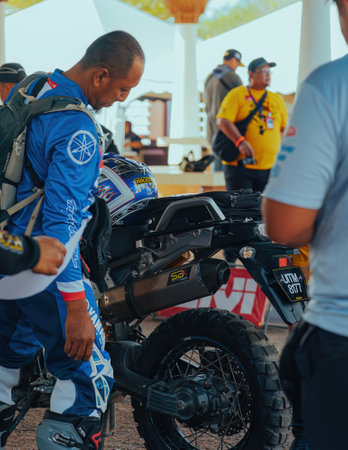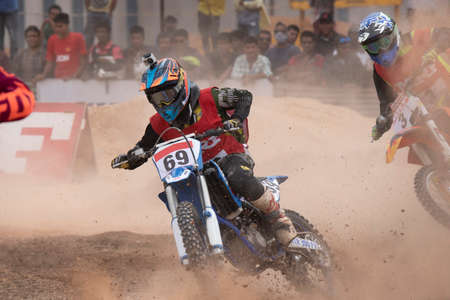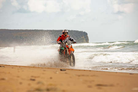 Mackay, Queensland, Australia - September 8th 2019: Motorcycle beach racing by the ocean