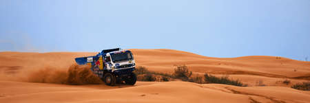 KSAR GHILANE, TUNISIA - JUNE 8, 2019: Tatra of Martin Soltys (Buggyra Racing Team) during training drive in Sahara near Ksar Ghilane, Tunisia, June 8, 2019