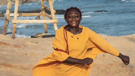 MBOUR, SENEGAL - DECEMBER Circa, 2021. Few women and men with Corona Virus mask walking, driving in street village. Some wearing mask, some does not. Senegalese people refuse reality of covid 19 in their country.